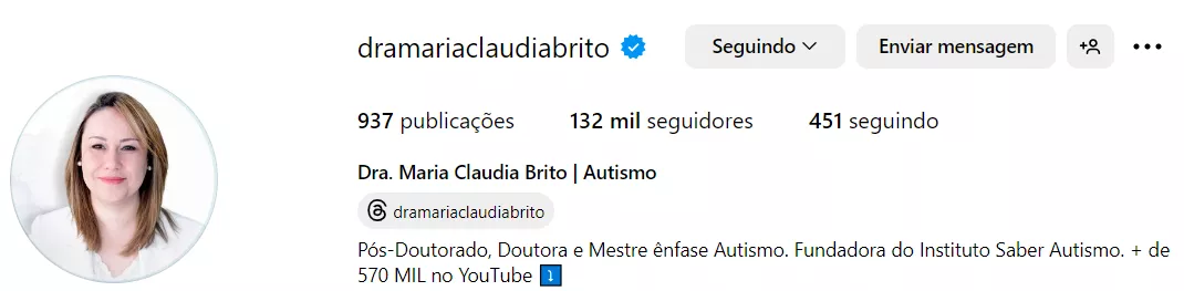 ✓ Sócio-fundadora do Instituto Nacional Saber Autismo (2016).